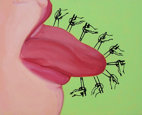 how to love sushi #1 2004, acrylic 16 x 20 |